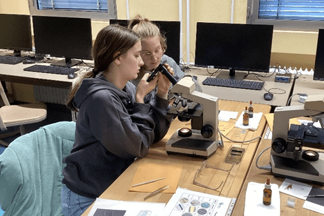 MINT-Schülerinnen entdecken Fasern und Haare unter dem Mikroskop